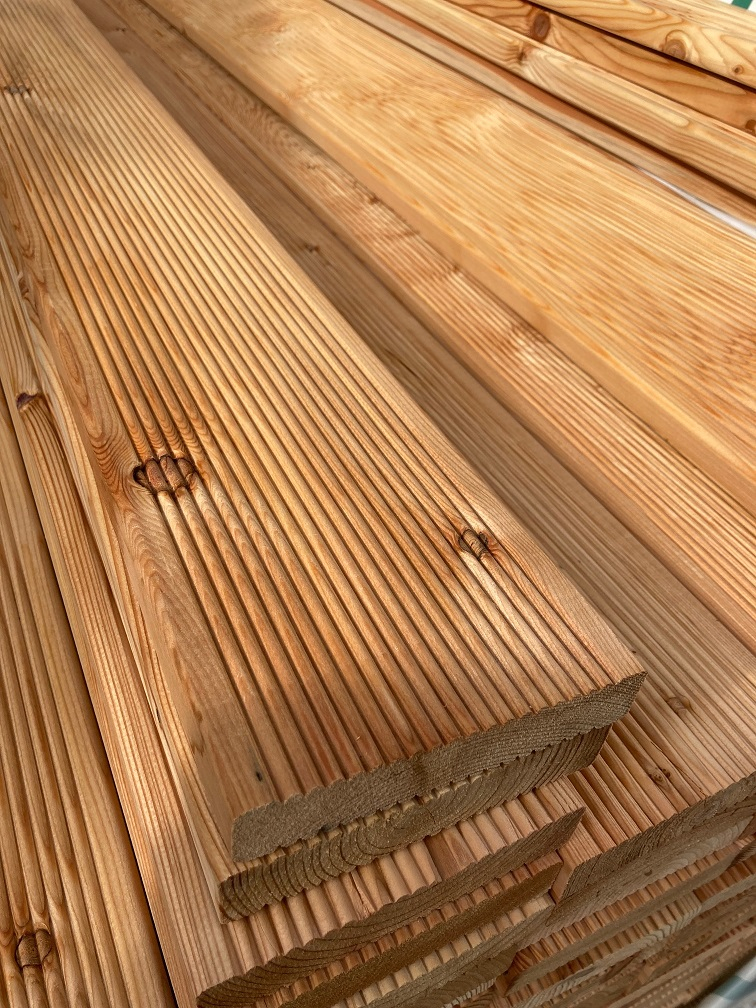 Dřevěná terasa ze Sibiřského modřínu představuje klasiku na českém trhu. Charakteristickým rysem je textura v podobě slunečních paprsků. Letokruhy vypadají na příčných řezech velmi dobře a na povrchu výrobků vytváří velmi hezkou kresbu dřeva, která ozdobí jakýkoliv exteriér. Terasová prkna Sibiřský modřín udělají Vaší zahradu útulnou.